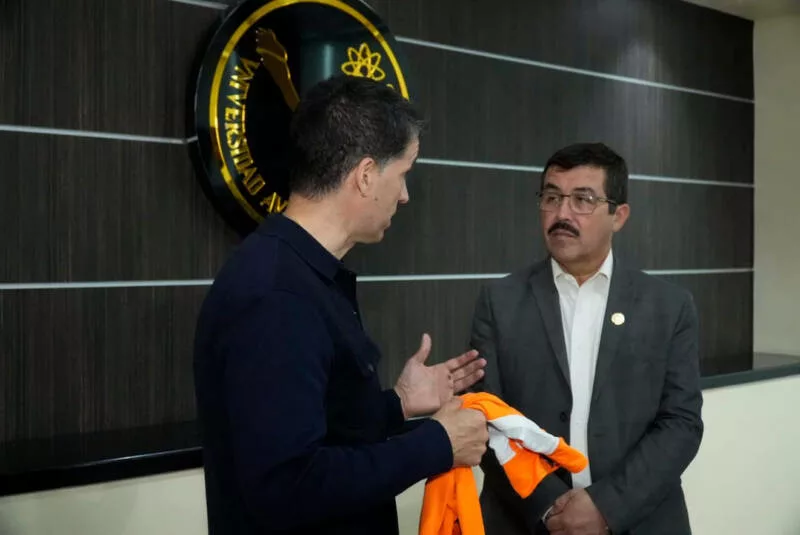 El rector Dámaso Anaya Alvarado, presentó al profesor Gustavo Díaz, como director técnico del equipo de fútbol Correcaminos de la Universidad Autónoma de Tamaulipas (UAT).