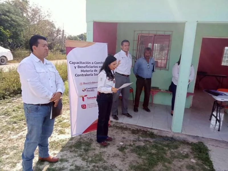 Ciudad Victoria, Tamaulipas.- Personal de la Secretaría Anticorrupción y Buen Gobierno, realiza a través de Contraloría Social, capacitaciones al Comité de Contraloría Social del Programa de Agua Potable, Drenaje y Tratamiento (PROAGUA) en distintas sedes de Tamaulipas, entre ellas el Salón Ejidal Buena Vista en Villa de Casas, el ejido Santa Fe en González y el ejido Alfredo V. Bonfil en San Fernando.