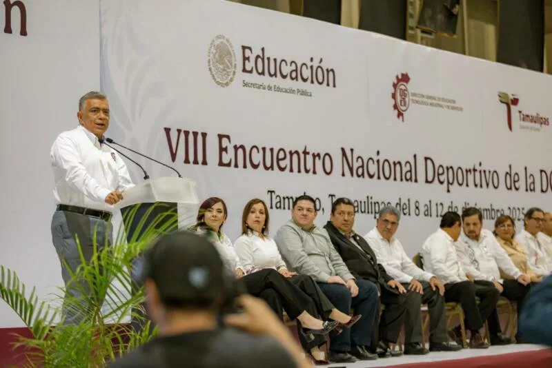 Tampico, Tamaulipas.– Con la participación de más de tres mil estudiantes de los 32 estados de la República, Miguel Ángel Valdez García, secretario de Educación de Tamaulipas, en representación del gobernador Américo Villarreal Anaya, inauguró el VIII Encuentro Nacional Deportivo DGETI 2025.