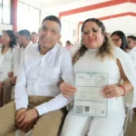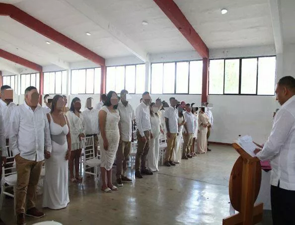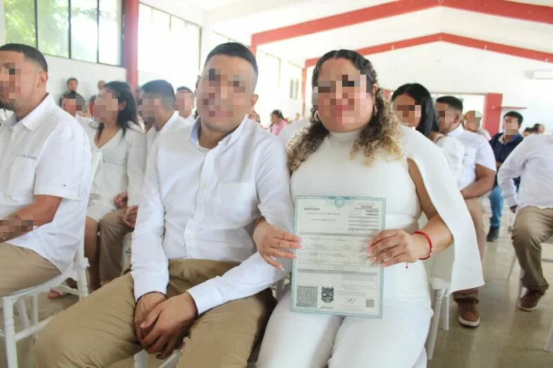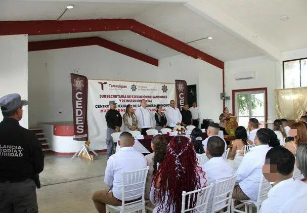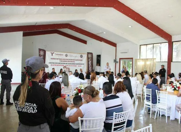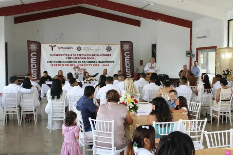 Matamoros, Tamaulipas.- En un ambiente de respeto y compromiso, 15 hombres y tres mujeres que residen en el Centro de Ejecución de Sanciones (CEDES) del municipio de Matamoros formalizaron su unión a través de la Campaña de Matrimonios Colectivos 2025 organizada por el Sistema DIF.
