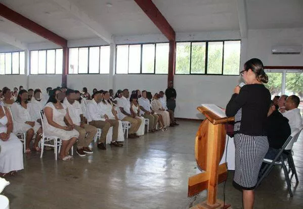 La ceremonia se realizó en el Salón de Usos Múltiples del área varonil de este centro y contó con la presencia de autoridades del Registro Civil y del Sistema DIF.
