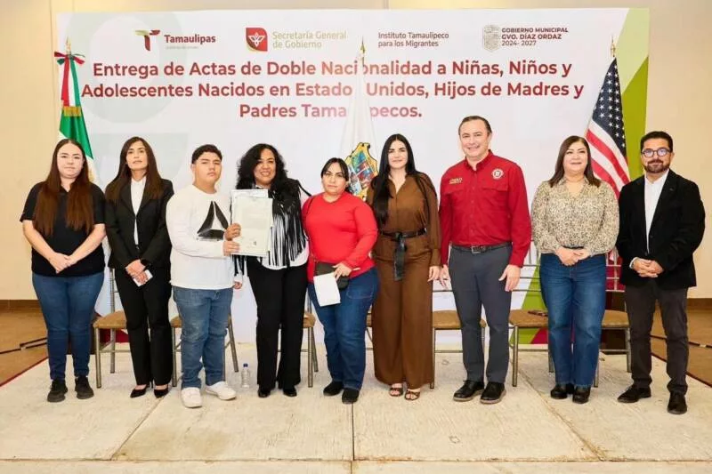 Gustavo Díaz Ordaz, Tamaulipas.- En cumplimiento a las políticas públicas orientadas a la protección y garantía de los derechos de las personas migrantes y sus familias, el Gobierno del Estado de Tamaulipas, a través del Instituto Tamaulipeco para los Migrantes (ITM), en coordinación con el Ayuntamiento de Gustavo Díaz Ordaz, llevó a cabo la entrega de 250 actas de doble nacionalidad a niñas, niños y adolescentes nacidos en los Estados Unidos de América, hijos de madre o padre originario del estado de Tamaulipas, en el marco de la conmemoración del Día Internacional del Migrante.