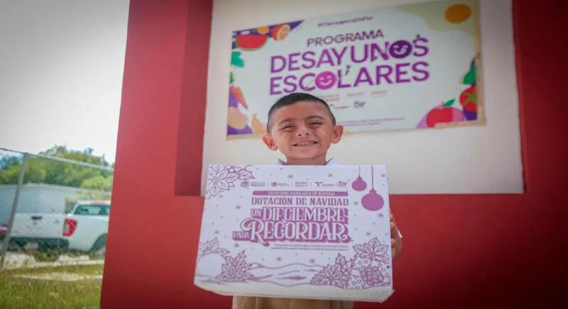 La dotación navideña está integrada por 17 insumos, entre los que destacan harina de maíz, arroz, aceite vegetal, lenteja, frijol, avena en hojuelas, atún en agua, leche descremada, chícharos y cacahuates, con los que se pueden preparar desayunos nutritivos en los hogares, equivalentes a los que reciben las y los estudiantes durante el ciclo escolar en sus planteles.