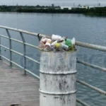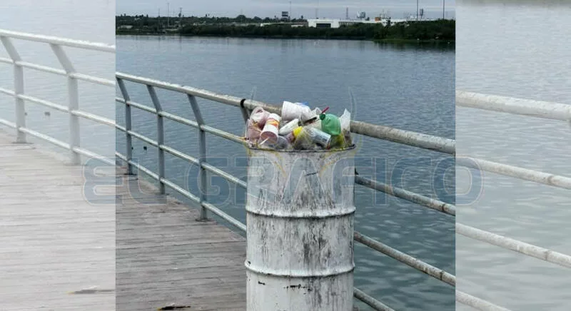 Los tambos contenedores de basura, se encuentran rebosantes y muchos de los desechos se encuentran desperdigados en las banquetas del denominado “Malecón”.