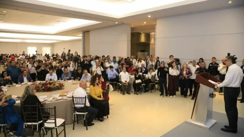 Al dar la bienvenida al evento, Francisco Cuéllar Cardona, coordinador general de Comunicación Social, destacó que desde el inicio del gobierno de Américo Villarreal existe una relación clara, sostenida y de respeto con la prensa, basada en el reconocimiento pleno del libre ejercicio periodístico y en que la libertad de expresión se ejerce sin hostigamientos, sin presiones, sin cercos desde el poder.