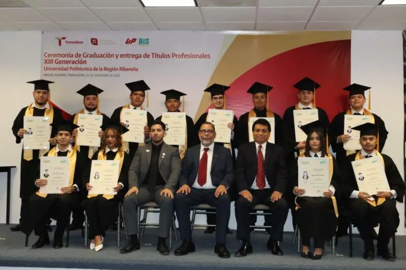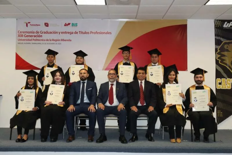 Miguel Alemán, Tamaulipas.– La Universidad Politécnica de la Región Ribereña (UPRR) entregó a la sociedad una nueva generación de profesionistas al celebrar la ceremonia de graduación de la XIII Generación 2021–2025 de los tres programas educativos que conforman la institución.