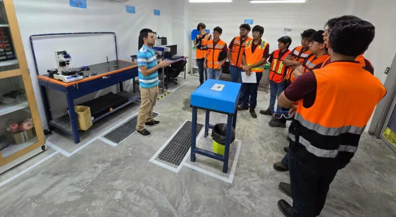 Durante el recorrido por sus intalaciones, los estudiantes recibieron una exposición introductoria sobre la historia, el giro y la proyección de la empresa. Posteriormente, conocieron de primera mano los procesos de manufactura destinados a clientes de las industrias Surface Mount Technology (SMT), tecnología crucial en la fabricación de componentes electrónicos modernos, y la aeroespacial.
