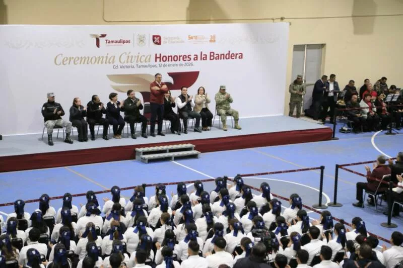 Ciudad Victoria, Tamaulipas.– El gobernador de Tamaulipas, Américo Villarreal Anaya resaltó el papel trascendental de la educación y del magisterio en la formación de una sociedad más humana, justa y con visión de futuro, al presidir la Ceremonia de Honores a la Bandera en la Benemérita Escuela Normal Federalizada de Tamaulipas.