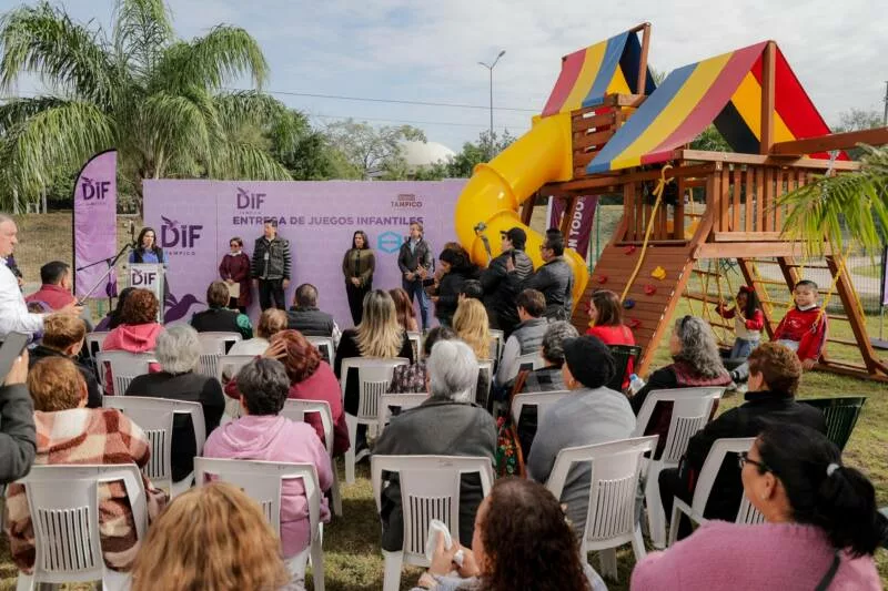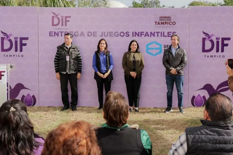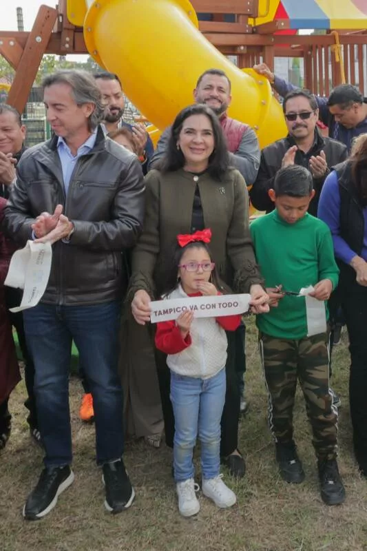 La primera autoridad, acompañada de la Presidenta del Sistema DIF Tampico, Dra. Luz Adriana Villarreal Anaya, y del empresario Jorge Eduardo Eichelmann Muela, destacó que este nuevo espacio fue posible gracias a la donación de juegos y mobiliario por parte de la iniciativa privada, reflejo -dijo- del trabajo coordinado entre el gobierno municipal y el sector empresarial.