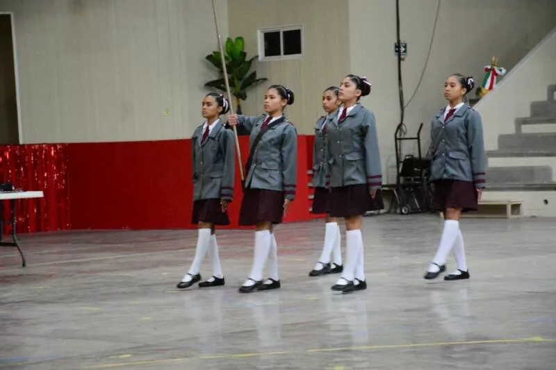 Señaló que esta etapa se desarrolló con la participación de seis instituciones educativas de la región, con 48 alumnas, alumnos y figuras educativas, quienes demostraron su capacidad y disciplina para ejecutar con precisión, sincronía y firmeza los diversos movimientos o ejercicios como parte de una escolta de bandera.