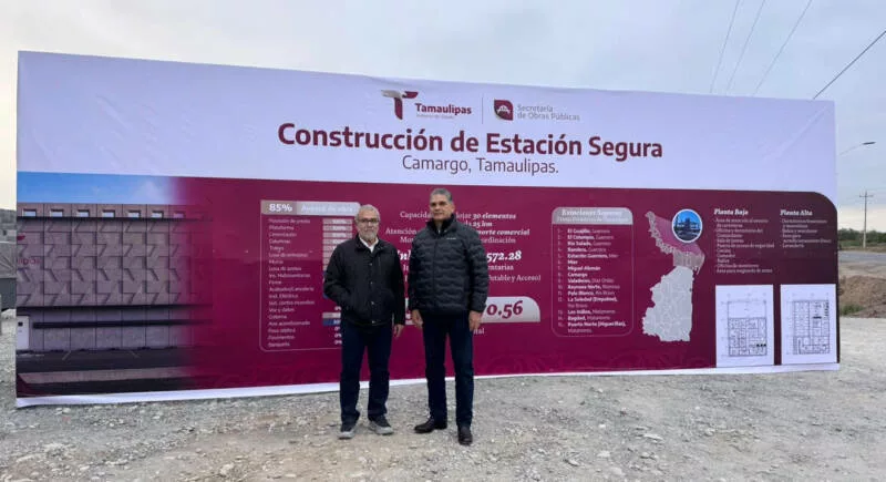 Acompañado por el secretario de Obras Públicas de Tamaulipas, Pedro Cepeda Anaya, el titular de la Secretaría de Seguridad Pública realizó un recorrido por la Estación Camargo, cuya edificación presenta un avance del 85 por ciento. Esta obra forma parte de un proyecto integral que contempla la construcción de 15 Estaciones Seguras, las cuales estarán distribuidas estratégicamente cada 25 kilómetros a lo largo de la franja fronteriza.