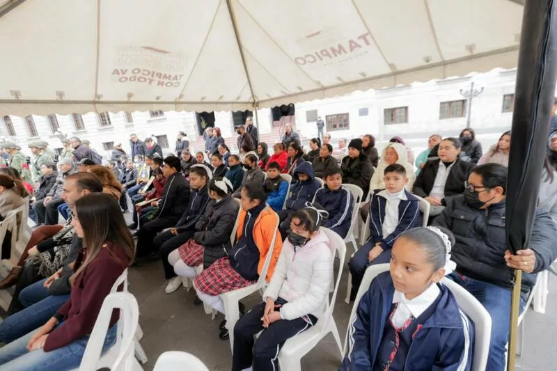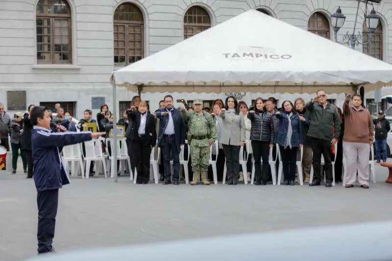 La Presidenta Municipal de Tampico, Mónica Villarreal Anaya, encabezó este martes la Ceremonia Cívica de Honores a la Bandera en la Plaza de Armas, con la presencia de personal del 15o Batallón de Infantería, reafirmando el compromiso de su administración con el fortalecimiento del sector educativo como eje prioritario para el desarrollo del municipio.