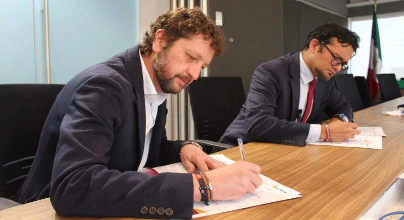 Ciudad de México.- En las instalaciones de la Representación del Gobierno de Tamaulipas en la Ciudad de México, el secretario de Desarrollo Energético, Walter Julián Ángel Jiménez, realizó la firma del Convenio de Colaboración con la empresa Solarig, la cual desarrollará un proyecto fotovoltaico en la zona sur del estado, al ser ganadora de la Convocatoria de la Comisión Nacional de Energía para solicitudes prioritarias de permisos de generación e interconexión al Sistema Eléctrico Nacional.