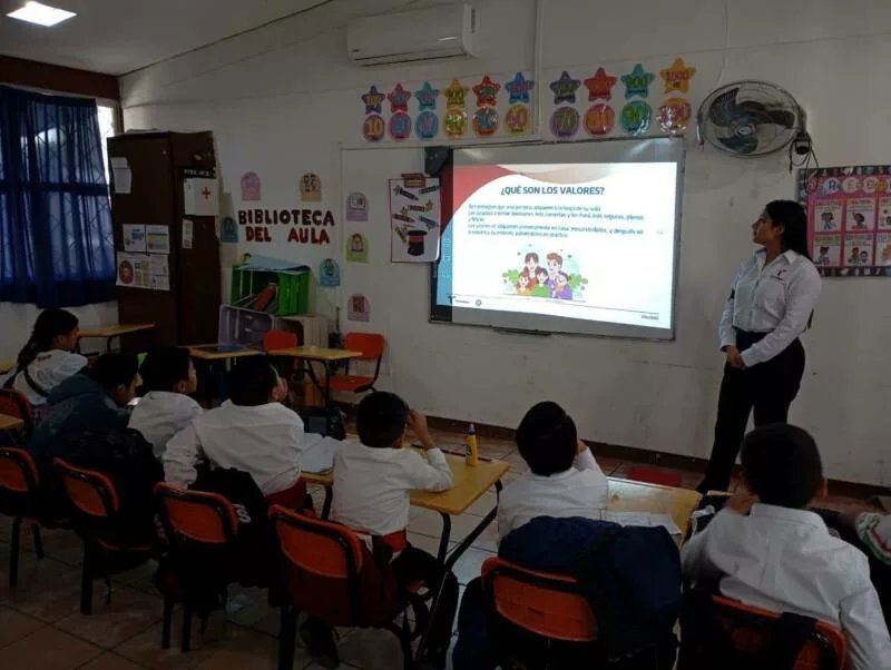En el ejido “El Olmo” se visitaron las escuelas primarias Álvaro Obregón y Benito Juárez, e impartieron la plática “Valores” a estudiantes, quienes participaron también en la actividad “Las palabras mágicas”, cuyo objetivo es fomentar la cordialidad, socialización y respeto mutuo.