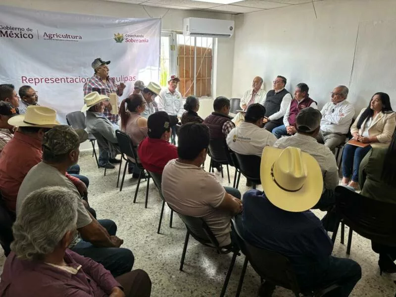 San Fernando, Tamaulipas.- El secretario de Desarrollo Rural, Pesca y Acuacultura, Antonio Varela Flores, en compañía de personal de la SADER, FIRA y SFI, presentó los avances del Programa de Crédito Cosechando Soberanía, una estrategia impulsada por la presidenta de la República, Claudia Sheinbaum Pardo, cuyo objetivo es incrementar la producción de alimentos mediante un enfoque integral que contempla créditos, acompañamiento técnico y esquemas de comercialización, con el fin de elevar el bienestar de las y los productores del campo.