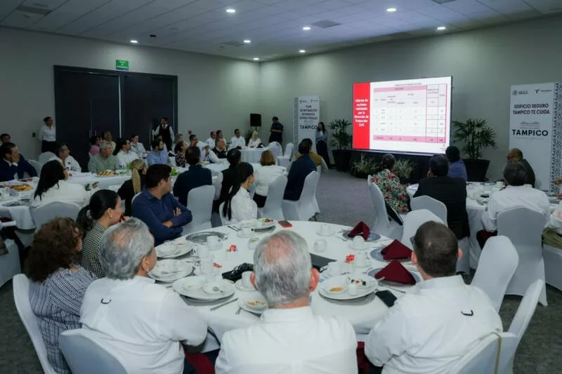 Durante la reunión, efectuada en el Centro de Convenciones Expo Tampico la primera autoridad, acompañada del director de Protección Civil José Antonio Marin y Rafael Benavides Osorio, presidente del Colegio Mexicano de Ingenieros y Arquitectos AC, dijo que el trabajo coordinado entre Colegios, Asociaciones, Universidades y Gobierno es indispensable para atender y resolver el tema de los edificios en condición de riesgo, a fin de salvaguardar la vida de los tampiqueños y preservar el patrimonio edificado.