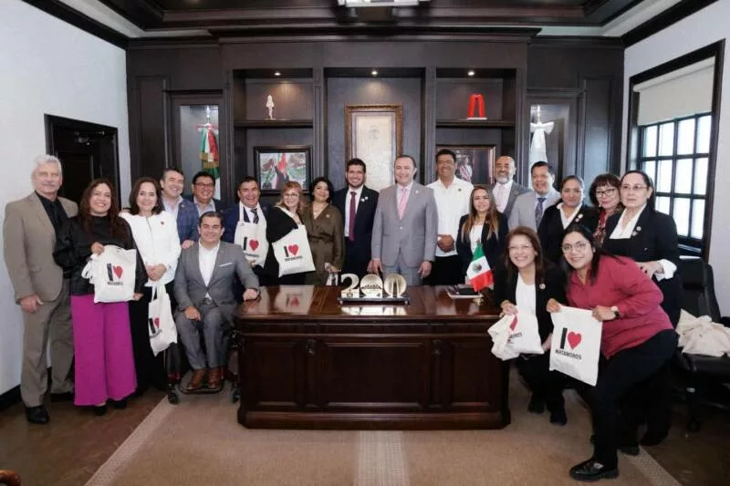 H. Matamoros, Tamaulipas, - En el marco de las actividades conmemorativas por el Bicentenario de Matamoros, el alcalde Beto Granados encabezó el recibimiento oficial a las y los integrantes de la Sexagésima Sexta Legislatura del Congreso del Estado de Tamaulipas, quienes celebrarán en esta ciudad una sesión ordinaria itinerante. El encuentro se realizó en la sala Benito Juárez de la Presidencia Municipal como parte del acto protocolario de salutación.
