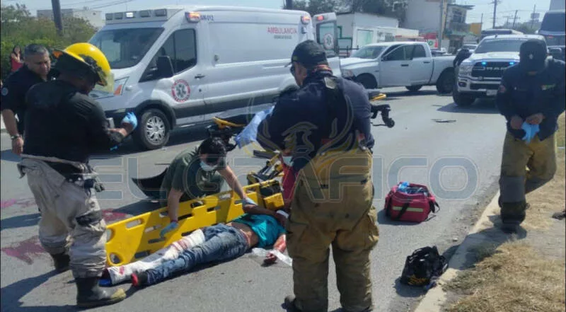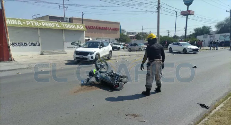 Un motociclista sufrió lesiones de gravedad tras ser arrollado por un automóvil cuando intentaba incorporarse al bulevar Fidel Velázquez, en el cruce con la calle Nicolás Bravo.