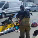 El motociclista sufrió amputación parcial de la pierna derecha y fue trasladado de emergencia a un hospital por paramédicos, en coordinación con elementos del Cuerpo de Bomberos, quienes también atendieron el derrame de aceite provocado por el choque.