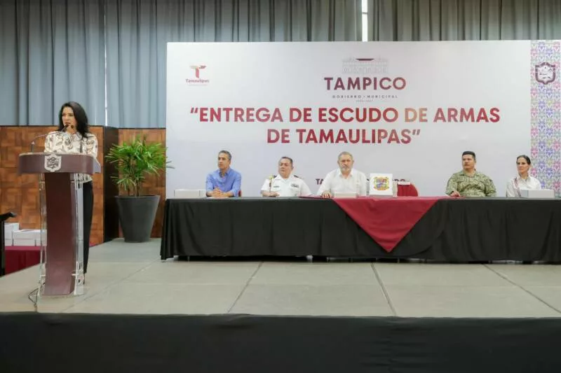 En el marco de la conmemoración del centenario del Himno a Tamaulipas, la presidenta municipal de Tampico, Mónica Villarreal Anaya, encabezó la ceremonia de entrega del lienzo del Escudo de Armas de Tamaulipas a 46 instituciones públicas del Gobierno Estatal y Municipal.