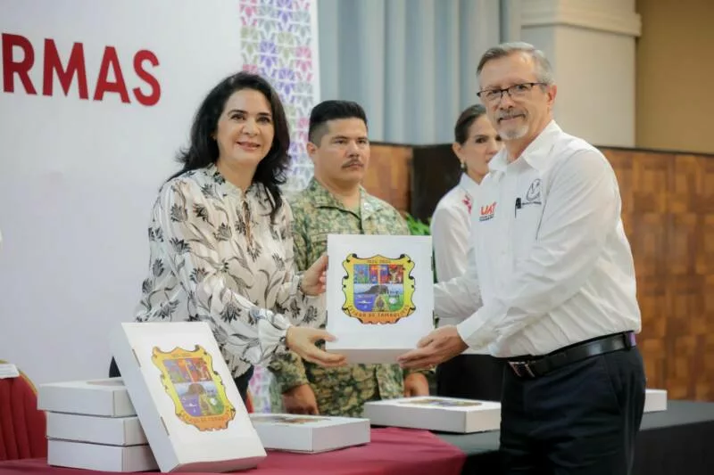 Cabe mencionar, que recientemente el Gobierno Municipal hizo entrega de 151 lienzos del Escudo de Armas de Tamaulipas a igual número de planteles públicos de educación básica y media superior, en un evento realizado en la Expo Tampico.