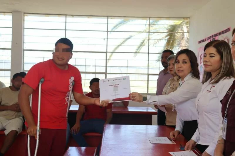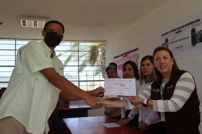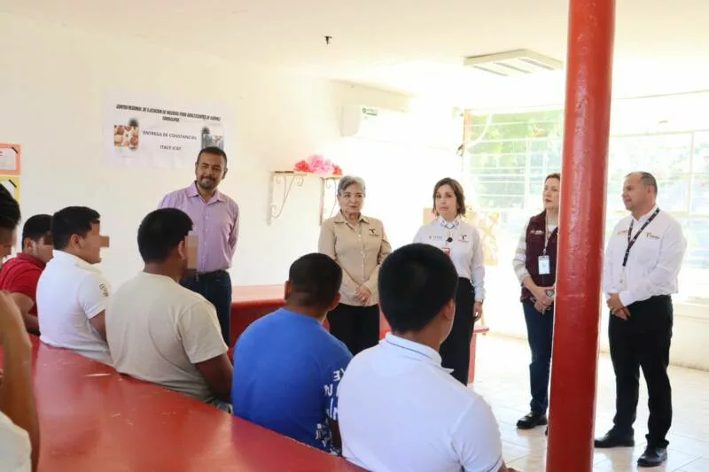 La ceremonia de entrega de constancias se realizó en el Centro Regional de Ejecución de Medidas para Adolescentes del municipio de Güémez y contó con la presencia de la directora general del ITACE, Claudia Anaya Alvarado.