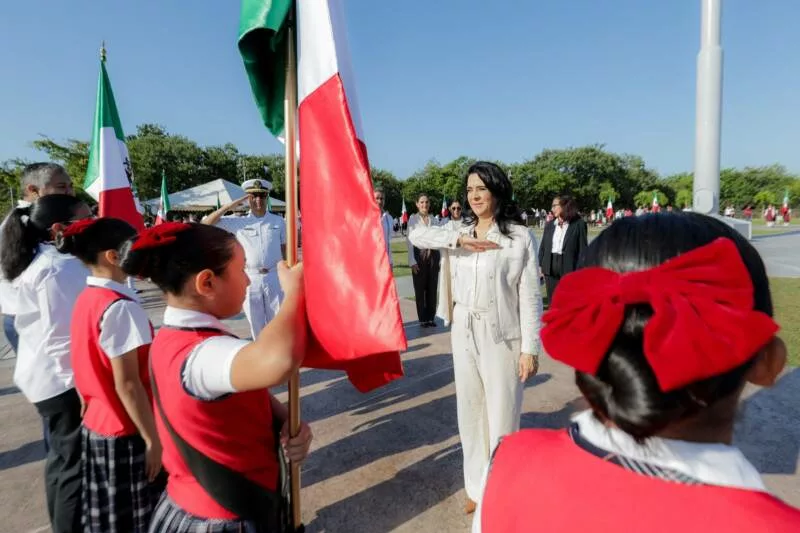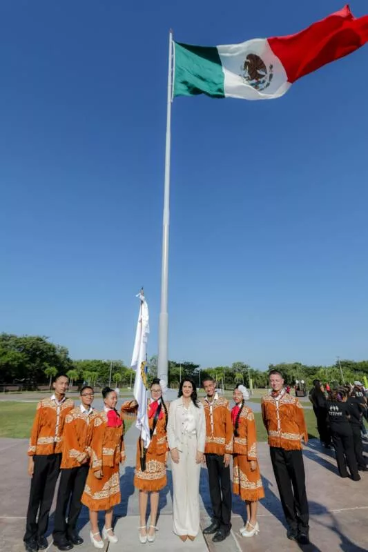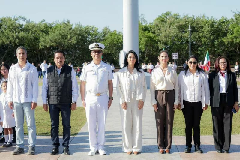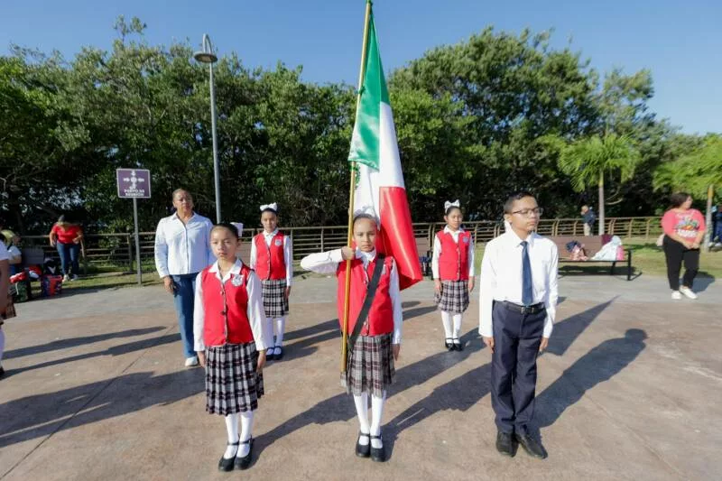Acompañada de la Directora de Educación en el municipio, María Alejandra Sánchez Sánchez; así como de la titular del Sistema DIF Tampico, Luz Adriana Villarreal Anaya; del representante de la Primera Zona Naval, Virgilio Araiza Bricaire, la jefa de la comuna destacó que el Día de la Bandera representa una de las fechas más significativas del calendario cívico nacional, al simbolizar la historia, las luchas y las aspiraciones del pueblo mexicano.