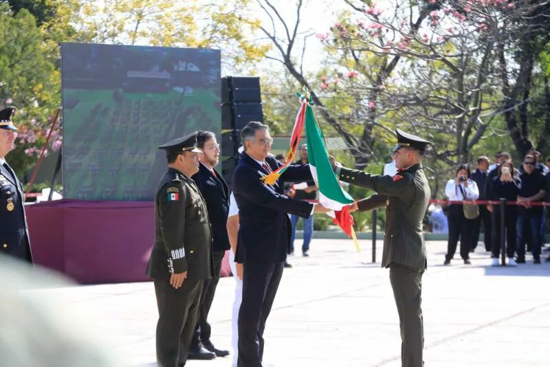 “Acompañamos con todo el orgullo y el sentido de lealtad y pertenencia que produce en cada uno de nosotros la Bandera Nacional, que es el símbolo por excelencia que entraña nuestra mexicanidad, que evoca lo mejor de nuestra historia y que es el estandarte que ha transitado nuestras transformaciones nacionales, representando el heroísmo de hombres y mujeres que se entregaron su vida para que hoy podamos disfrutar el país que tenemos”, manifestó el ejecutivo tamaulipeco.
