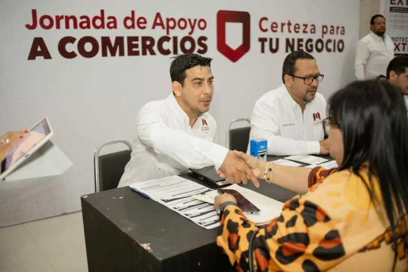La reunión se llevó a cabo en el Centro de Convenciones Mundo Nuevo, donde empresarios locales acudieron con el propósito de regularizar sus establecimientos y recibir orientación directa por parte de las distintas dependencias municipales; asimismo, el Presidente Municipal agradeció la confianza de los comerciantes y empresarios en su administración.