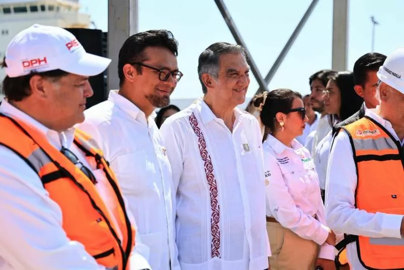 En el acto también estuvieron presentes Octavio Barrera Torres, director de Exploración y Producción de Pemex; Jesús Toledo Guzmán, subsecretario de Asuntos Marítimos y Portuarios; Vidal Llerenas Morales, subsecretario de Industria y Comercio de la Secretaría de Economía; Fidel Maldonado Herrera, titular de la ASIPONA Altamira; Walter Julián Ángel Jiménez, secretario de Desarrollo Energético de Tamaulipas, y Ninfa Cantú Deándar, secretaria de Economía.