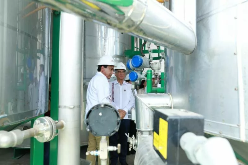 Durante la visita, el mandatario estatal y el subsecretario federal estuvieron acompañados por el director general del Grupo Industrial Águila, Juan Ruperto Rodríguez, quien ofreció una explicación detallada sobre el funcionamiento de la planta, la cual opera bajo un proceso de pirólisis para convertir desechos plásticos en cinco tipos de combustibles: gasolina, diésel, queroseno, parafina y gas, proceso del cual fueron testigos.