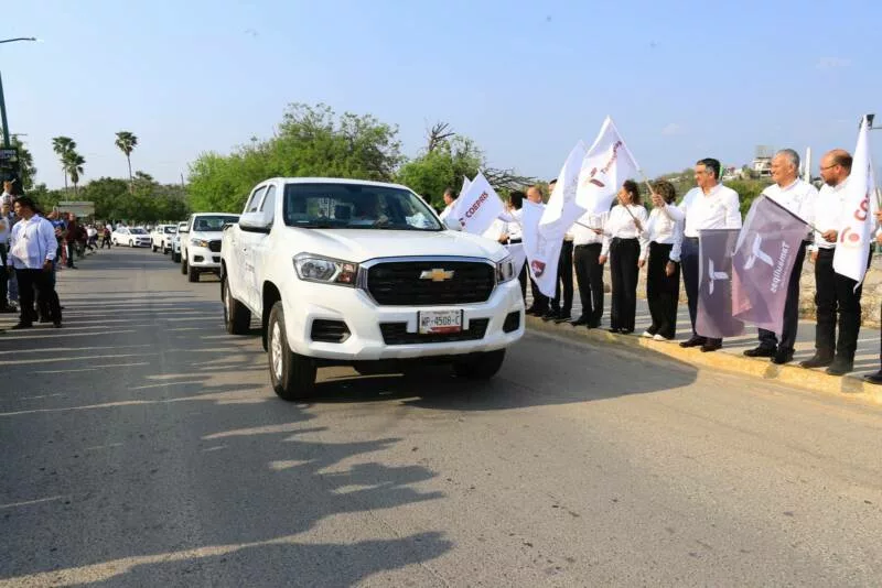 Al término de la ceremonia cívica, el gobernador realizó la entrega de un parque vehicular de 10 camionetas pick up y tres autos sedan para la operatividad de la Comisión Estatal para la Protección contra Riesgos Sanitarios (COEPRIS).