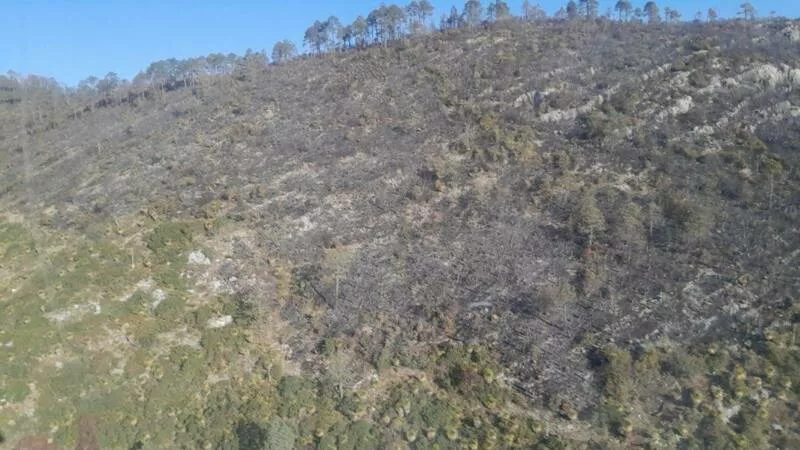 De acuerdo con el reporte del Centro Estatal de Manejo del Fuego (CEMF), el siniestro registró una afectación aproximada de 540 hectáreas de vegetación, principalmente en áreas de bosque de encino–pino, así como zonas de hojarasca, herbáceo, arbustivo y arbolado adulto.