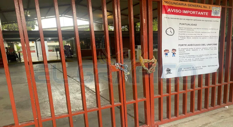 Ciudad Victoria, Tam.- Con cadena y candado, padres de familia cerraron esta mañana la Escuela Secundaria General Número Dos “Profesor Arquímedes Caballero Caballero”, denunciando la falta de dirección en el plantel desde hace dos años.