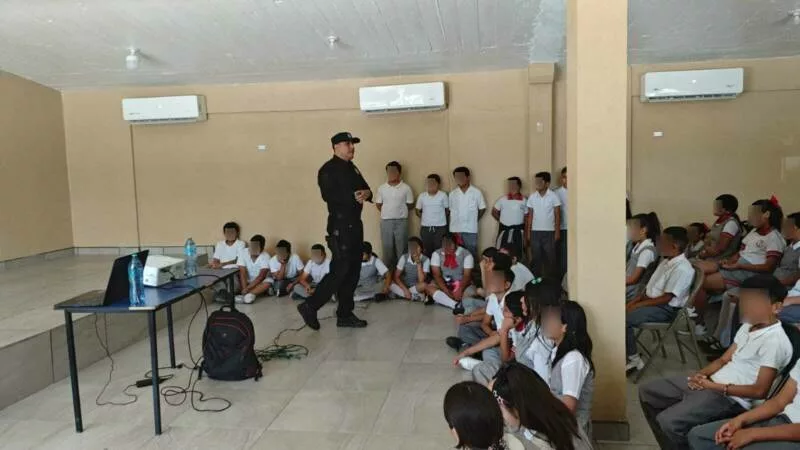 Ante un auditorio conformado por 149 estudiantes, 20 madres de familia, 10 docentes y un directivo, elementos de la Guardia Estatal impartieron la conferencia denominada “Prevención de la Violencia Digital”.