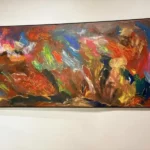 Integrada por 11 cuadros de mediano formato y una pieza monumental, la obra de la artista originaria de Tamaulipas —y actualmente radicada en Alemania— utiliza capas de color y texturas superpuestas para simbolizar las huellas que deja el viaje a través de diferentes continentes.
