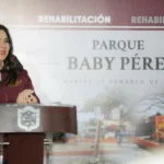 Explicó que la modernización del parque ‘Baby Pérez’ incluyó la mejora de accesos y escaleras, instalación de pasamanos, iluminación periférica y reflectores de campos; renovación del pasto sintético en cancha de futbol y reparación de la cancha de usos múltiples; instalación de juegos infantiles, bancas, y la rehabilitación integral de los espacios sanitarios.