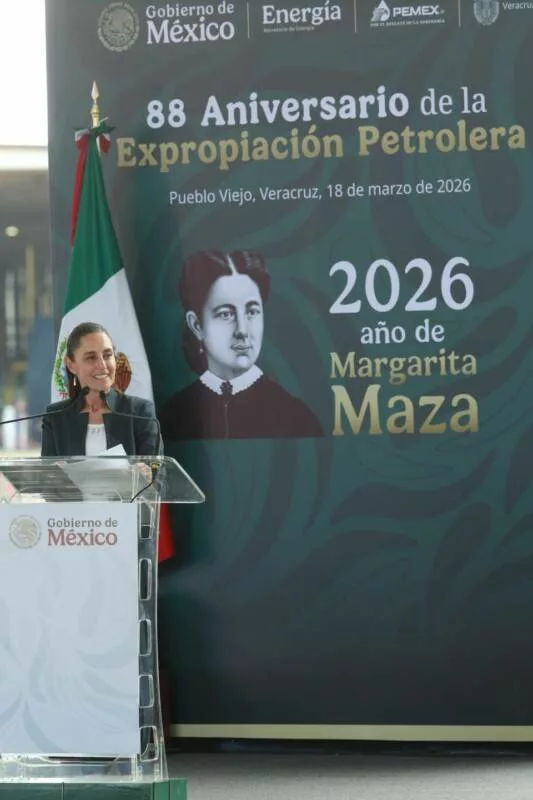 "Al recordar aquella noche histórica de 1938, reafirmamos nuestro compromiso con el pueblo y con la patria: que nunca más se entregue la riqueza de México, que nunca más se renuncie a nuestra soberanía, que nunca más se dude de la capacidad de nuestros trabajadores y nuestros técnicos", expresó.