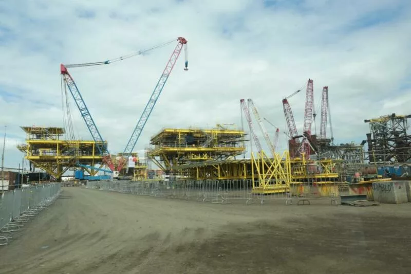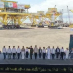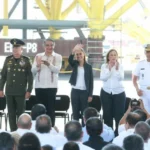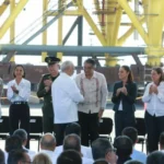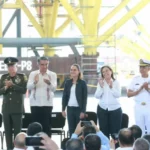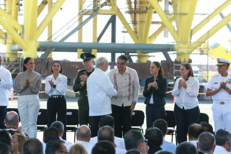Durante el evento celebrado en el Patio Industrial de Pueblo Viejo, Veracruz, y junto a la gobernadora anfitriona Rocío Nahle García, al pie de las nuevas plataformas petroleras marinas construidas por Petróleos Mexicanos, la presidenta Claudia Sheinbaum destacó la presencia de Américo Villarreal, a quien consideró "un hombre nacionalista y visionario".