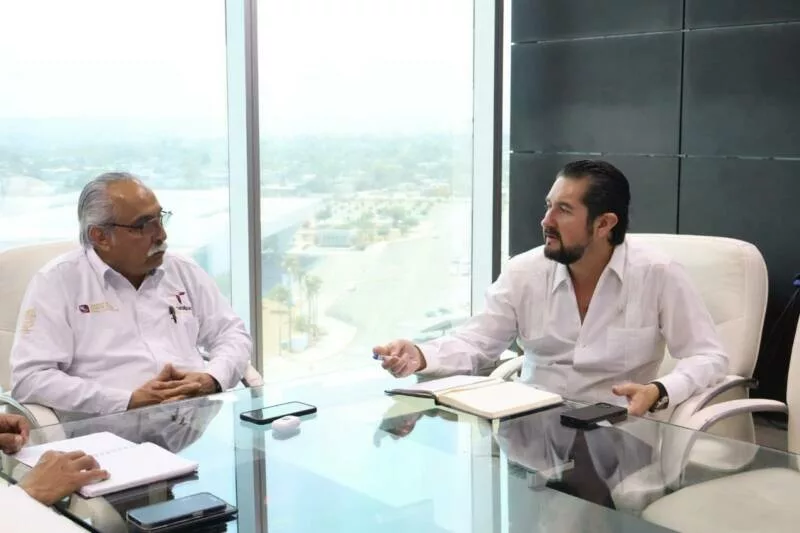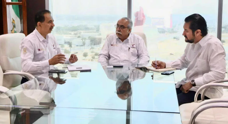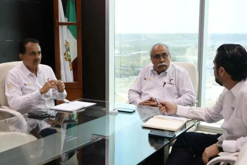 Ciudad Victoria, Tamaulipas.– Con el objetivo de fortalecer la comercialización de la producción ostrícola proveniente de granjas acuícolas en operación en los municipios de Matamoros, San Fernando, Soto la Marina y Aldama, el secretario de Desarrollo Rural, Pesca y Acuacultura, Antonio Varela Flores, y el subsecretario de Pesca y Acuacultura, Jorge de Jesús Montagner Mendoza, sostuvieron una reunión de trabajo con el presidente de la CANIRAC Victoria, Jesús Arnoldo Gómez González.