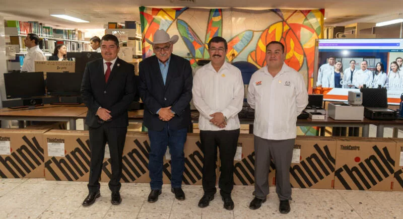 De manera complementaria, el rector hizo entrega de equipo tecnológico que incluye 13 cámaras tipo Policom para videoconferencia, 15 equipos de cómputo de escritorio, así como pantallas que permitirán modernizar los procesos de enseñanza mediante entornos digitales interactivos