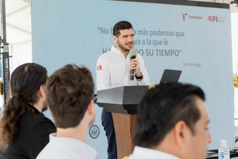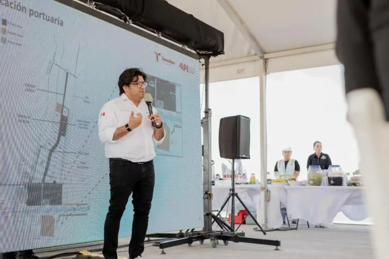 Señaló que, tras décadas de expectativa en torno a su operación, fue en 2022, con la llegada del gobernador Américo Villarreal Anaya, cuando se dio un impulso decisivo al proyecto, logrando que el 2 de agosto de 2025 el puerto iniciara formalmente operaciones.