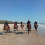 Como parte del operativo, el Agrupamiento Montado realiza patrullajes a caballo en la zona de playa, lo que permite una vigilancia ágil, cercana y respetuosa con el entorno natural, evitando el uso de vehículos motorizados en áreas sensibles.