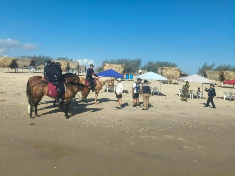 Soto la Marina, Tamaulipas.– En el marco del periodo vacacional de Semana Santa 2026, el Agrupamiento Montado de la Guardia Estatal puso en marcha un operativo especial de seguridad en la playa La Pesca, uno de los destinos turísticos más concurridos del estado.