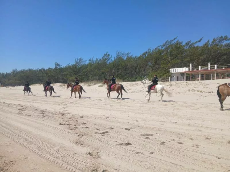 Como parte del operativo, el Agrupamiento Montado realiza patrullajes a caballo en la zona de playa, lo que permite una vigilancia ágil, cercana y respetuosa con el entorno natural, evitando el uso de vehículos motorizados en áreas sensibles.