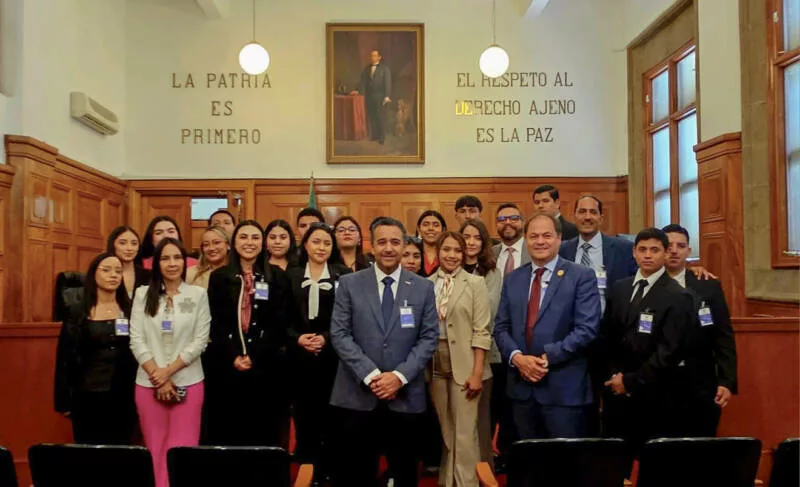 En otra parte de su estancia, los estudiantes visitaron la Suprema Corte de Justicia de la Nación, lo que les permitió presenciar una sesión del pleno, en la que el presidente de la SCJN, ministro Hugo Aguilar Ortiz, hizo una pausa para brindar un emotivo mensaje a los universitarios, quienes, además, pudieron realizar un recorrido por los espacios históricos.