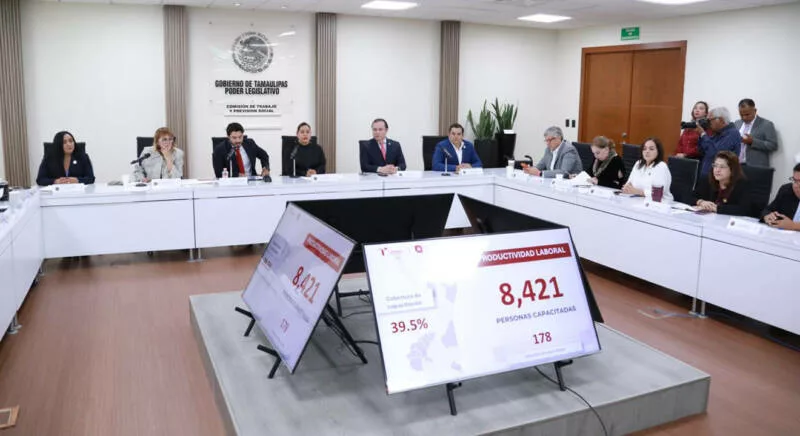 Ciudad Victoria, Tamaulipas.– La consolidación de políticas públicas en materia laboral permitió avanzar en la generación de empleo, la capacitación y la defensa de los derechos de las y los trabajadores en Tamaulipas; estos fueron los resultados presentados por el secretario del Trabajo y Previsión Social, Luis Gerardo Illoldi Reyes, al comparecer ante la comisión correspondiente del Congreso del Estado, presidida por la diputada Gabriela Regalado Fuentes y sus siete integrantes, así como ante el presidente de la Mesa Directiva, Sergio Arturo Ojeda Castillo, en el marco de la glosa del Cuarto Informe de Gobierno de Américo Villarreal Anaya.