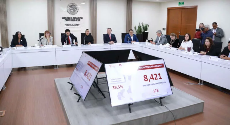 Ciudad Victoria, Tamaulipas.– La consolidación de políticas públicas en materia laboral permitió avanzar en la generación de empleo, la capacitación y la defensa de los derechos de las y los trabajadores en Tamaulipas; estos fueron los resultados presentados por el secretario del Trabajo y Previsión Social, Luis Gerardo Illoldi Reyes, al comparecer ante la comisión correspondiente del Congreso del Estado, presidida por la diputada Gabriela Regalado Fuentes y sus siete integrantes, así como ante el presidente de la Mesa Directiva, Sergio Arturo Ojeda Castillo, en el marco de la glosa del Cuarto Informe de Gobierno de Américo Villarreal Anaya.