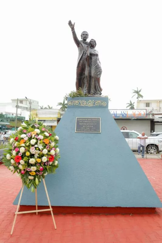 La emotiva celebración inició con la tradicional caravana de altamirenses y su encuentro con los tampiqueños en el monumento a los fundadores, instalado en la avenida Miguel Hidalgo, donde se colocó una ofrenda floral y se montó una guardia en su honor.