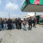 Jiménez, Tamaulipas.– Personal de la Guardia Estatal desplegó un operativo de seguridad para resguardar el paso de una caravana internacional de motociclistas que ingresó al estado con destino a El Salvador.